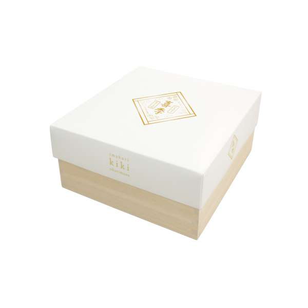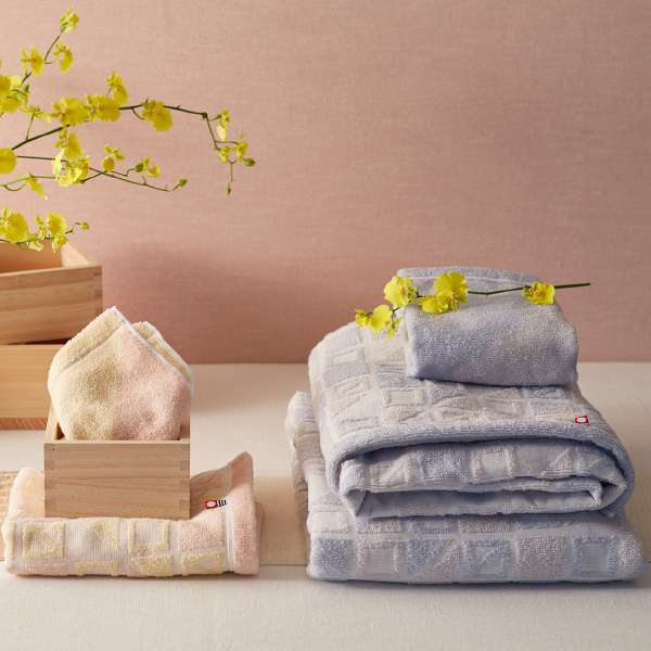 喜季のタオルには枡の模様を織り上げ、箱は枡のように組み上げた木箱に入れています。