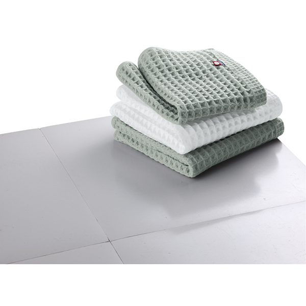 美しさと使い心地の良さを兼ね備えた、立体的な織柄の今治製タオルセット。「ワッフル織」と呼ばれるマス型のこの組織は、さらりとした肌触りと優れた吸水性が特長です。使っていくうちにボリュームが増して、ふんわりしていた感触が「ふっくら」に変わります。