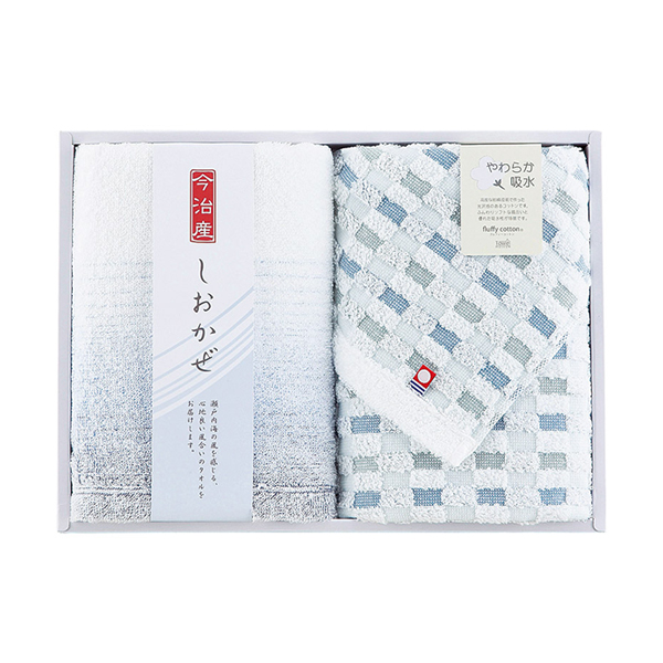 その名の通り、瀬戸内を吹き抜けるしおかぜのような、涼やかなデザインの今治フェイスタオル2枚のギフトです。ふんわりソフトな質感で優れた吸水性が特徴。爽やかなデザインが男性、女性問わず人気の今治タオルシリーズです。
