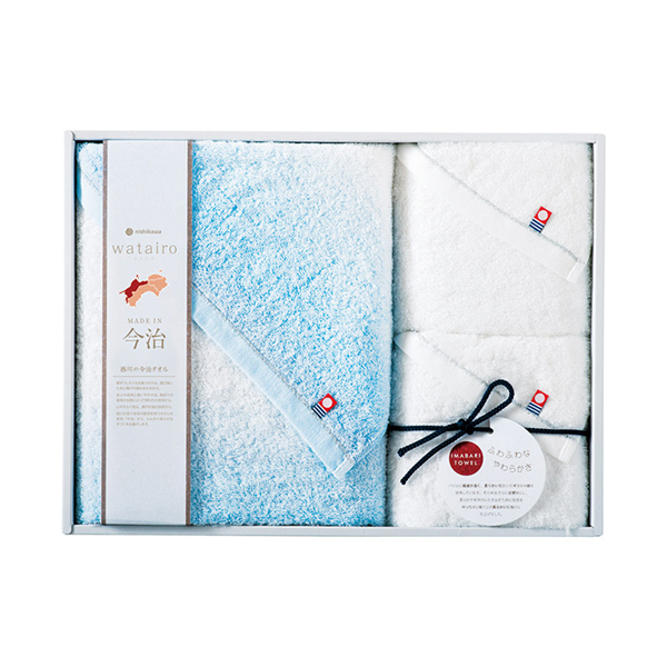 【9%OFF】今治 わたいろ タオルギフト バス1P・フェイスタオル2P(ブルー)|内祝い・お返しギフトならPIARY(ピアリー)