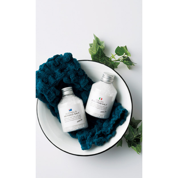 「もう一つの旅」をコンセプトに、世界の国々から集めた大自然の恵みいっぱいのバスソルトをボトルに詰め込んでセットしました。毎日のバスタイムが待ち遠しくなる、旅してる気分になるギフトです。