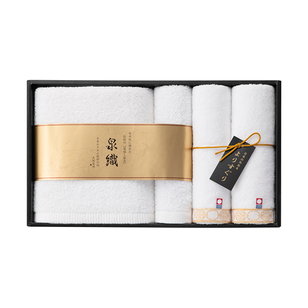 日本を代表するタオル産地の魅力を楽しめるタオルセット。やわらかく吸水性に優れた甘撚り糸の泉州タオルと、心地よい純白の今治タオルを組み合わせました。使い比べも楽しめる、贈り物に最適な上質ギフトです。