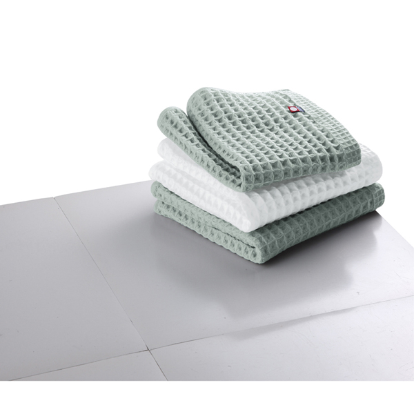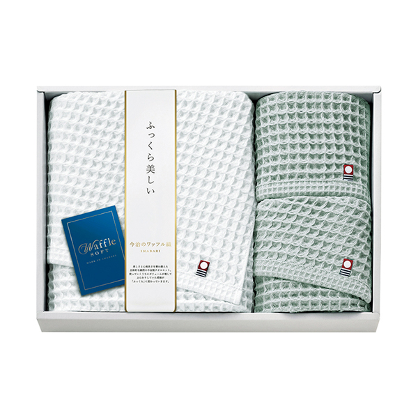 美しさと使い心地の良さを兼ね備えた、立体的な織柄の今治製タオルセット。「ワッフル織」と呼ばれるマス型のこの組織は、さらりとした肌触りと優れた吸水性が特長です。使っていくうちにボリュームが増して、ふんわりしていた感触が「ふっくら」に変わります。