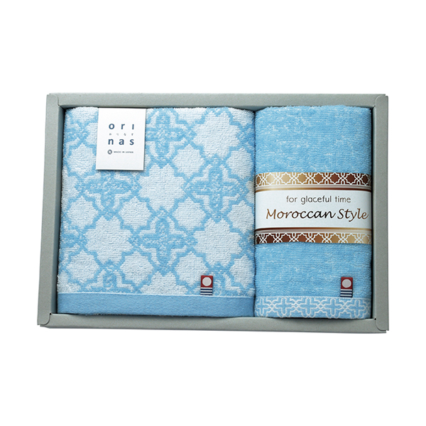 モロッカンスタイルのタイルをモチーフにした爽やかでラグジュアリーな雰囲気のあるデザイン。機能性と優しい肌触感が特徴の今治タオルです。男女問わず幅広い世代の方への贈り物におすすめです。