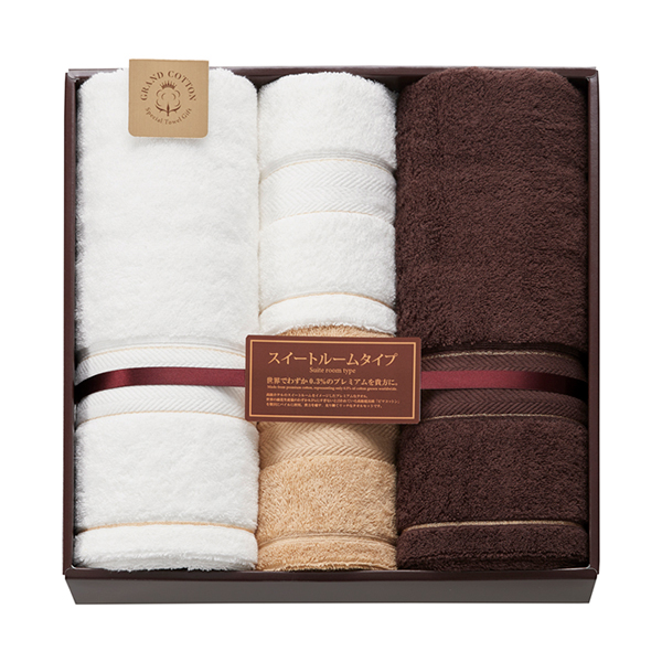 高級ホテルのスイートルームをイメージ。世界の綿花生産量のわずか0.3%にすぎないと言われている高級超長綿「ピマコットン」を贅沢にパイルに使用。貴方を癒す、光り輝くリッチなタオルセットです。