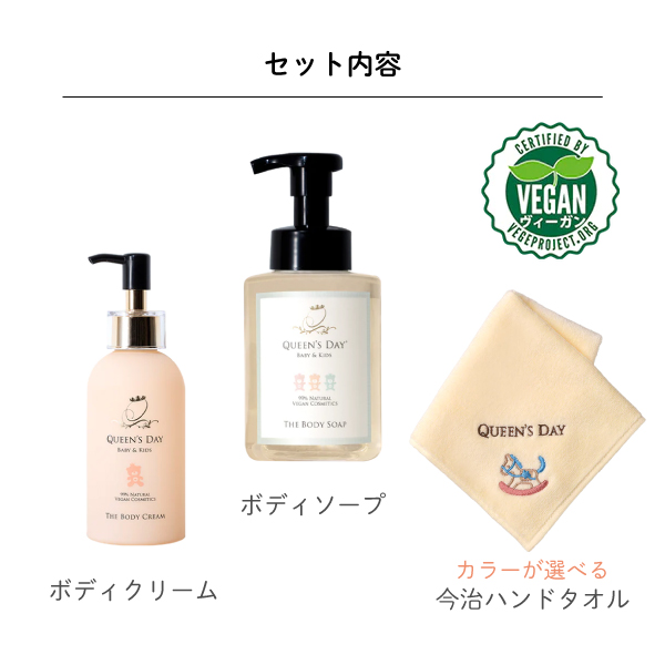 現役ママ達の声から生まれた、国産ヴィーガンのベビースキンケア「QUEEN'S DAY」「赤ちゃんにも心地よい肌触り」をコンセプトに人と環境に優しさを追求しています。