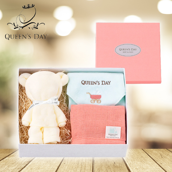 可愛いクマの沐浴ガーゼタオル+ハンドタオルセットは、産まれてすぐに使える実用的な贈り物♪
