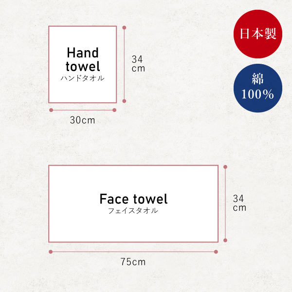 | 内容 | フェイスタオル(34×75cm)・ハンドタオル(34×30cm) |