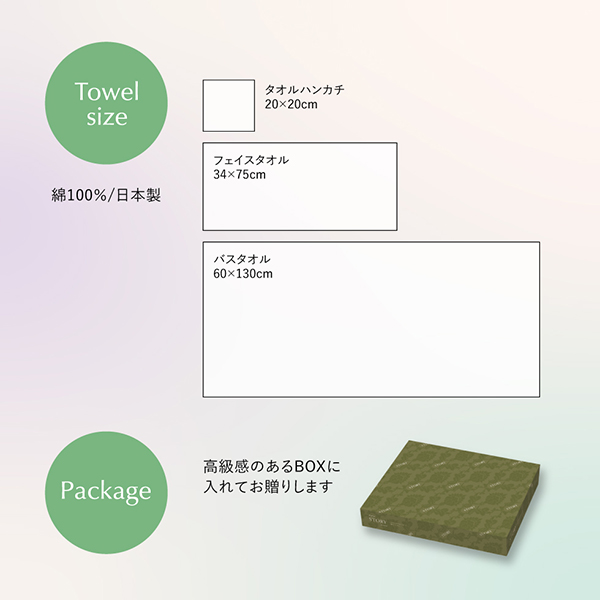 | 内容 | バスタオル2P(60×130cm)・フェイスタオル2P(34×75cm) |