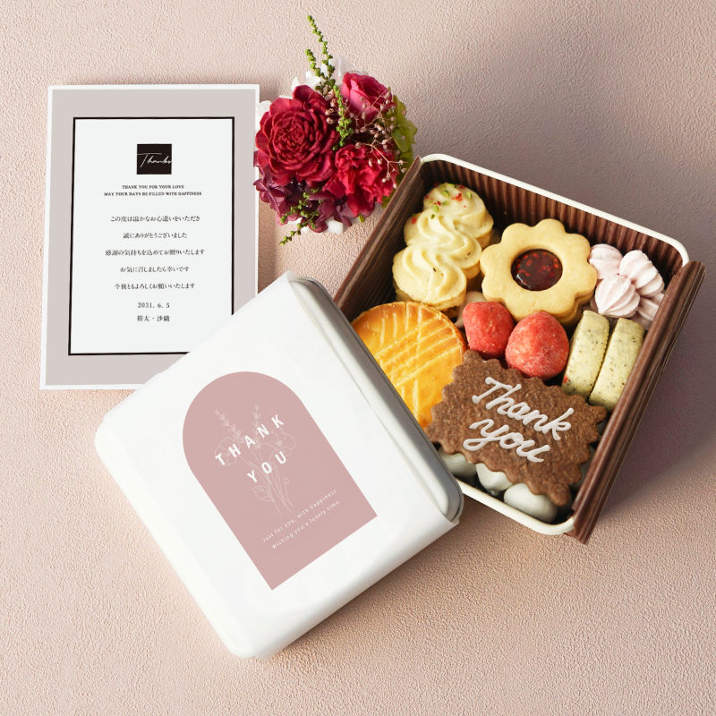 | 箱サイズ | クッキー缶:幅12.4×奥行12.4×高さ5.2cm ハンドタオル:幅8×奥行8×高さ8cm |