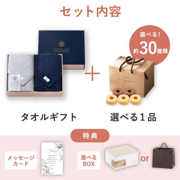人気のカタログギフトや品物ギフトにプラス1品の食品ギフトをセットにした、お祝いや内祝い・お祝い返しに人気のギフトセットです。