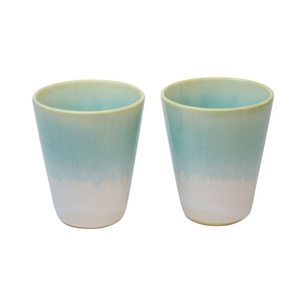 レモンをイメージしたイエローの縁取りに、海を思わせるブルーグリーンのグラデーションが爽やかなカップ。夏に使えば涼しさを感じられるアイテムです。幅を取らない細めの形状で持ちやすく使いやすいのもうれしいポイント。