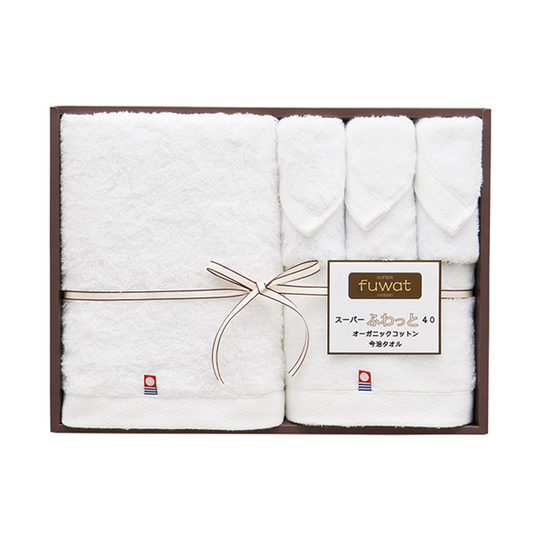 内祝いギフトセット(品物ギフト スーパーふわっと40 オーガニックコットン今治バスタオル1P フェイスタオル1P ハンドタオル3P(ホワイト))|内祝い・お返しギフトならPIARY(ピアリー)