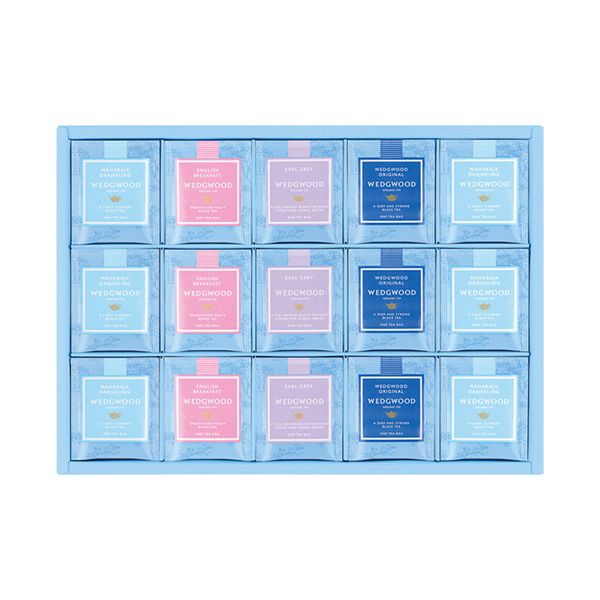 | 商品内容 | ウェッジウッド オリジナル(2g)・イングリッシュ ブレックファスト(2g)・アールグレイ(2g)×各15、マハラジャ ダージリン(2g)×30 |