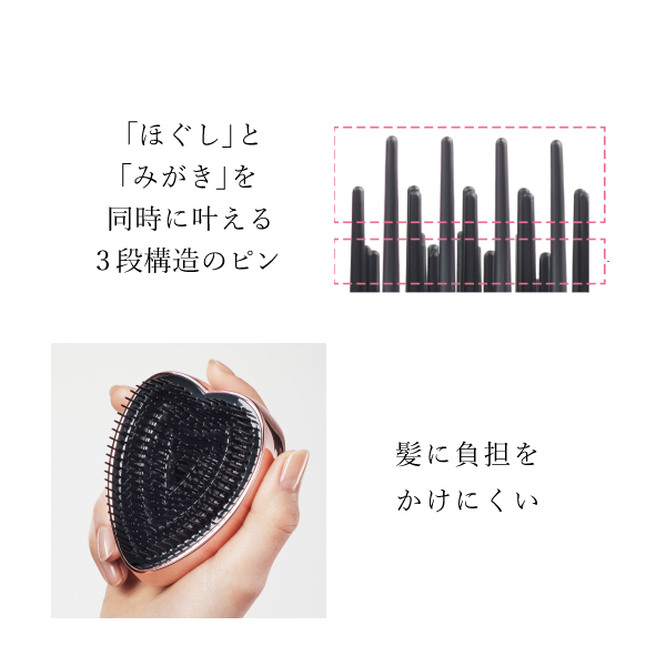 さっと梳かすだけで、「ほぐし」と「みがき」を同時に叶えて髪がまとまり、ツヤが手に入ります。