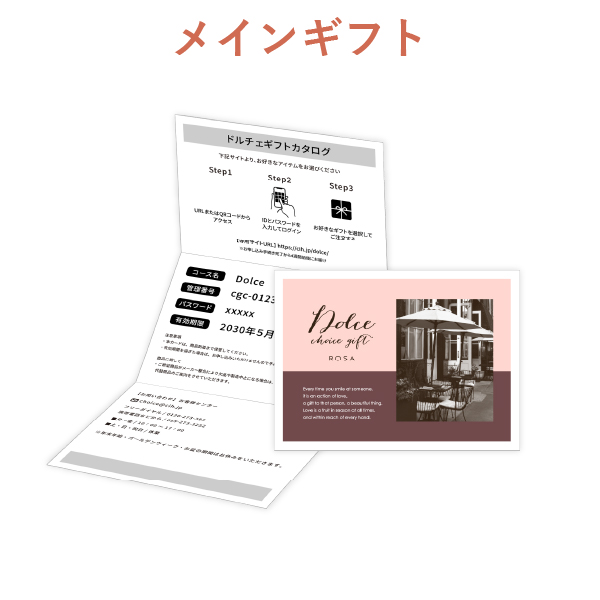 メインギフトは「カタログギフト Dolce ローザ」です。