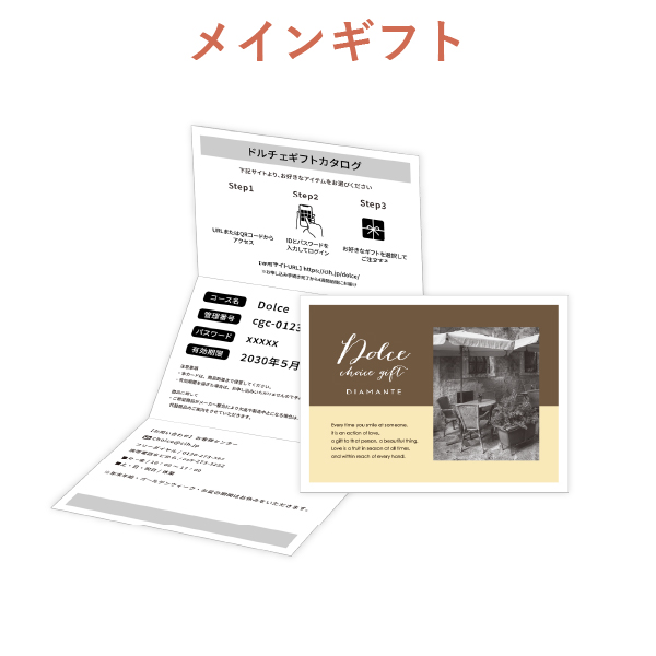メインギフトは「カタログギフト Dolce ディアマンテ」です。