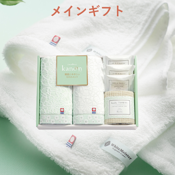 内祝いギフトセット(品物ギフト 今治かのん フェイス2P・綿ボディタオル1P・石けん3P)|内祝い・お返しギフトならPIARY(ピアリー)