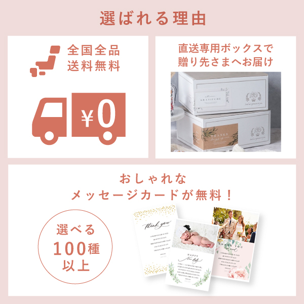 お写真やオリジナルメッセージが入れられる無料カードを添えて贈れば、気持ちも一緒に届きます。