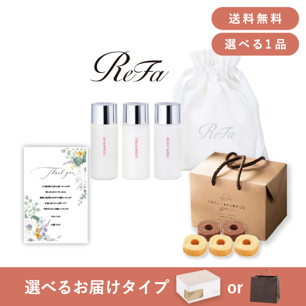 品物ギフトは、大人気の「ReFa BEAUTECH MINI BOTTLE SET」。食品ギフトをセットにした、お祝いや内祝い・お祝い返しに人気のギフトセットです。