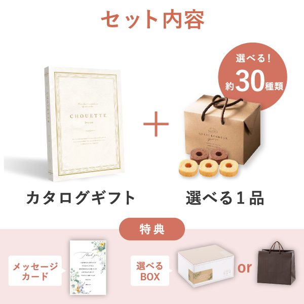オリジナルの大人気カタログギフトと、選べる食品ギフトをプラス1品にセットにした、お祝いや内祝い、結婚や出産のお祝い返しに人気のおすすめギフトセットです。