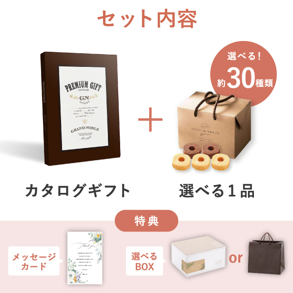 カタログギフト 「グランノーブル」と食品ギフトをセットにした、お祝いや内祝い・お祝い返しに人気のギフトセットです。