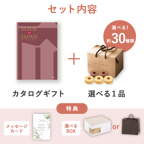 人気の高いカタログギフト〔MadeInJapan〕と、選べる食品ギフトをプラス1品にセットした、おすすめ出来るピアリーオリジナルのギフトセット。