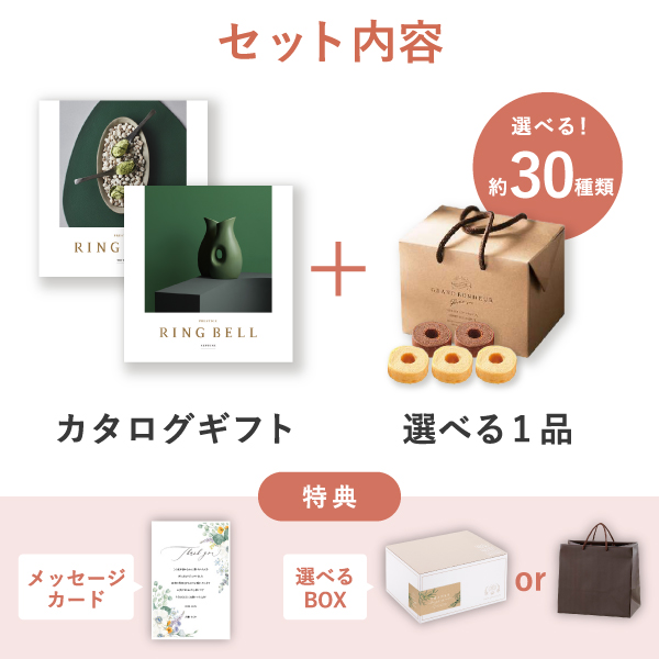 人気カタログギフトと食品ギフトをセットにした、お祝いや内祝い・お祝い返しにおすすめのギフトセットです。