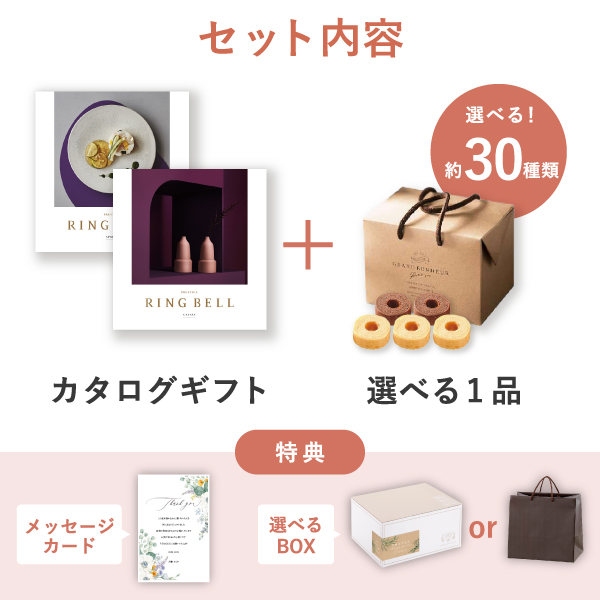 人気カタログギフトと食品ギフトをセットにした、お祝いや内祝い・お祝い返しにおすすめのギフトセットです。
