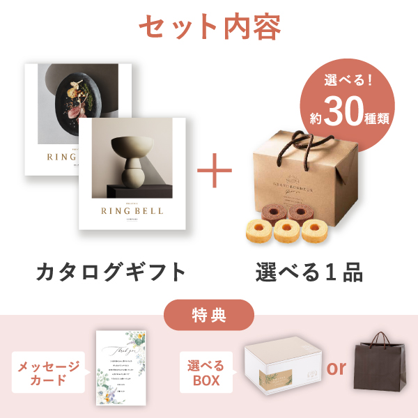 人気カタログギフトと食品ギフトをセットにした、お祝いや内祝い・お祝い返しにおすすめのギフトセットです。