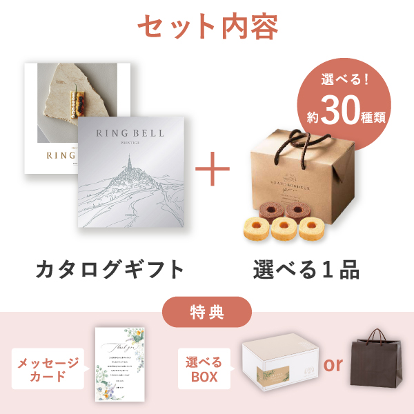 人気カタログギフトと食品ギフトをセットにした、お祝いや内祝い・お祝い返しにおすすめのギフトセットです。