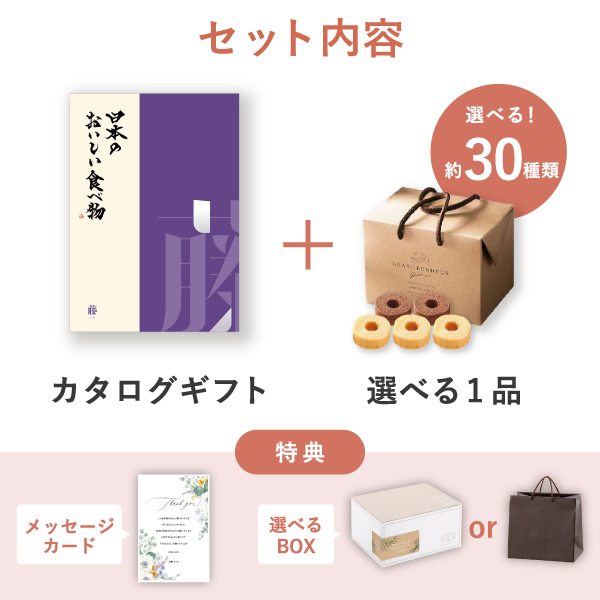 人気の高いグルメカタログギフトと選べる食品ギフトをプラス1品にセットした、ピアリーオリジナルのギフトセット。
