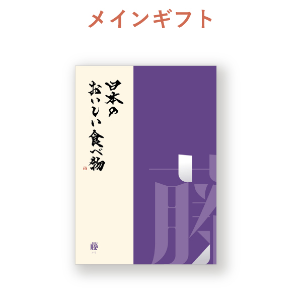 メインギフトは、相手が好きなものが選べる【カタログギフト】や、おしゃれなアイテムを取りそろえた【品物ギフト】、ファミリーへのギフトにも人気の【グルメギフト】をご用意しています。