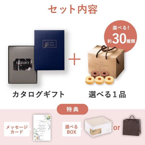人気のカード型カタログギフトと食品ギフトをセットにした、お祝いや内祝いにおすすめのギフトセットです。