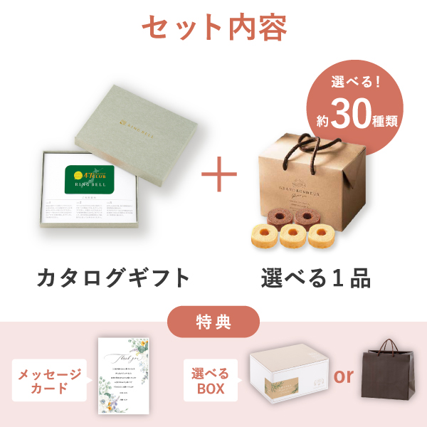プラス1品のギフトには、バウムクーヘン、ドリンク、スープなど、幅広い層の方に喜ばれる品をたくさんご用意しております。