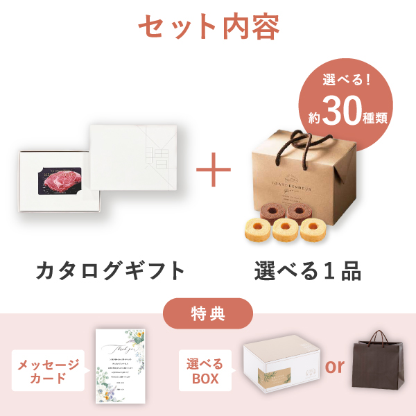 お好みでお選びいただいたプラス1品はカタログギフトとお届けします。