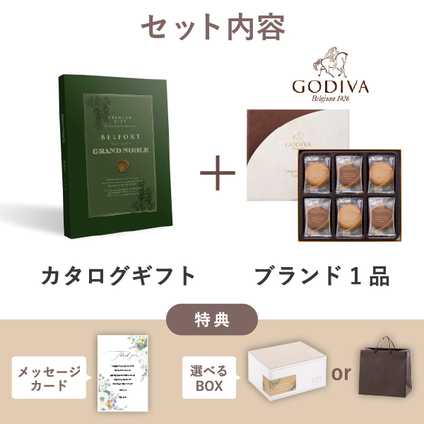 ブランド内祝いギフトセット(カタログギフト グランノーブル【8800円コース】ベルフォール+GODIVAクッキー)|内祝い・お返しギフトならPIARY(ピアリー)