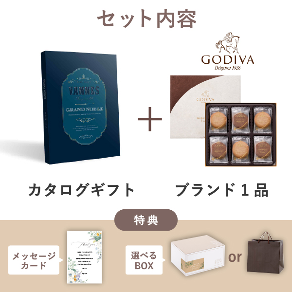 ブランド内祝いギフトセット(カタログギフト グランノーブル【30800円コース】ヴァンヌ+GODIVAクッキー)|内祝い・お返しギフトならPIARY(ピアリー)