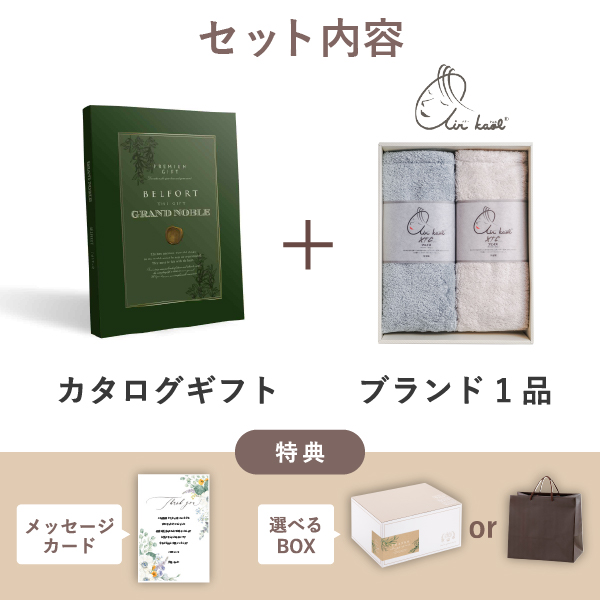 カタログギフトに人気の「エアーかおる」のタオルギフトをプラスした、ボリューム満点♪プレミアムなセットです。