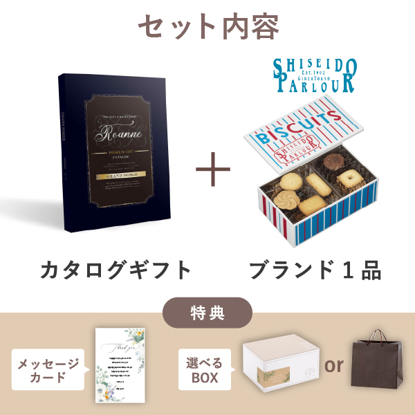 ブランド内祝いギフトセット(カタログギフト グランノーブル【3800円コース】ロアンヌ+資生堂パーラー ビスキュイ 20枚入)|内祝い・お返しギフトならPIARY(ピアリー)