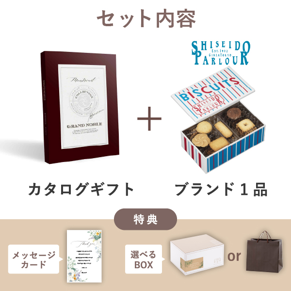 ブランド内祝いギフトセット(カタログギフト グランノーブル【5800円コース】モントルイユ+資生堂パーラー ビスキュイ 20枚入)|内祝い・お返しギフトならPIARY(ピアリー)