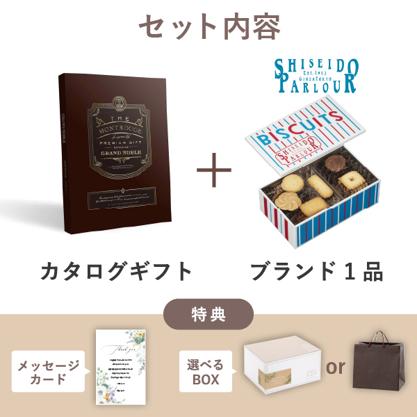 ブランド内祝いギフトセット(カタログギフト グランノーブル【50800円コース】モンルージュ+資生堂パーラー ビスキュイ 20枚入)|内祝い・お返しギフトならPIARY(ピアリー)