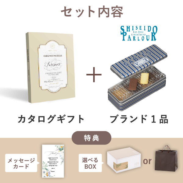 ブランド内祝いギフトセット(カタログギフト グランノーブル【3300円コース】シュレンヌ+資生堂パーラー サブレ 22枚入 )|内祝い・お返しギフトならPIARY(ピアリー)