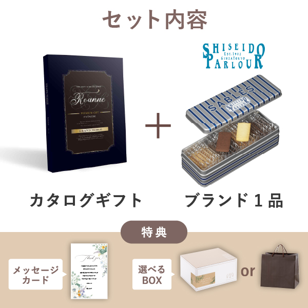 ブランド内祝いギフトセット(カタログギフト グランノーブル【3800円コース】ロアンヌ+資生堂パーラー サブレ 22枚入 )|内祝い・お返しギフトならPIARY(ピアリー)
