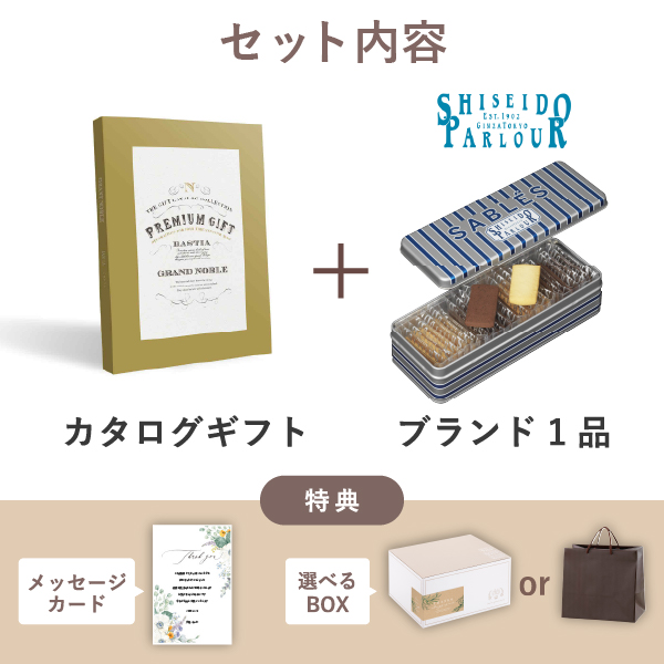 ブランド内祝いギフトセット(カタログギフト グランノーブル【4300円コース】バスティア+資生堂パーラー サブレ 22枚入 )|内祝い・お返しギフトならPIARY(ピアリー)