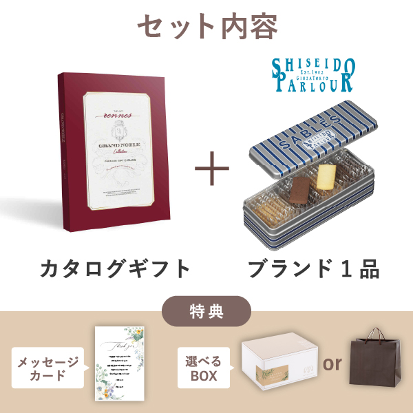 ブランド内祝いギフトセット(カタログギフト グランノーブル【4800円コース】レンヌ+資生堂パーラー サブレ 22枚入 )|内祝い・お返しギフトならPIARY(ピアリー)