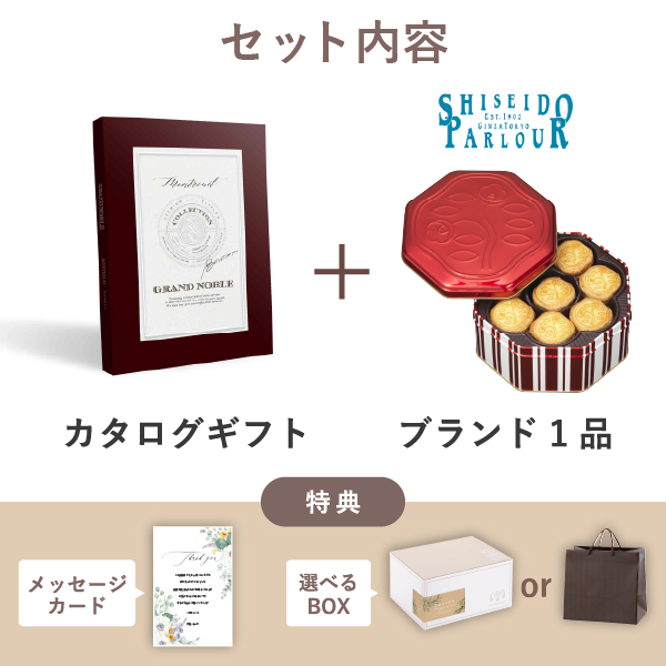ブランド内祝いギフトセット(カタログギフト グランノーブル【5800円コース】モントルイユ+資生堂パーラー 花椿ビスケット 48枚入)|内祝い・お返しギフトならPIARY(ピアリー)