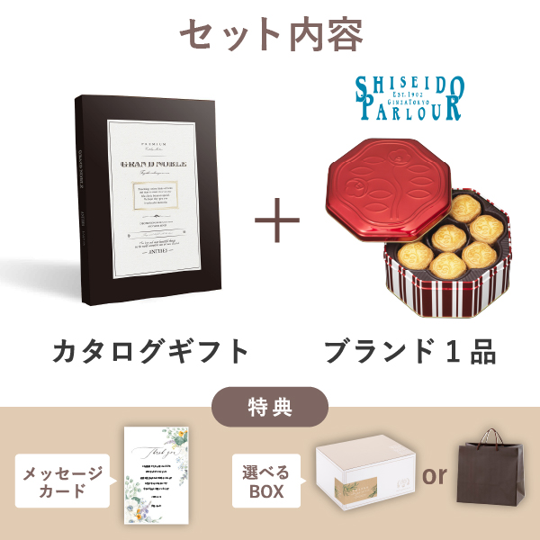 ブランド内祝いギフトセット(カタログギフト グランノーブル【20800円コース】アンティーブ+資生堂パーラー 花椿ビスケット 48枚入)|内祝い・お返しギフトならPIARY(ピアリー)