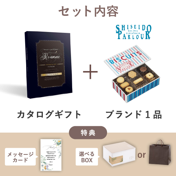 ブランド内祝いギフトセット(カタログギフト グランノーブル【3800円コース】ロアンヌ+資生堂パーラー ビスキュイ 30枚入)|内祝い・お返しギフトならPIARY(ピアリー)