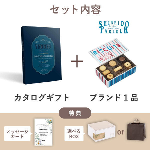 ブランド内祝いギフトセット(カタログギフト グランノーブル【30800円コース】ヴァンヌ+資生堂パーラー ビスキュイ 30枚入)|内祝い・お返しギフトならPIARY(ピアリー)